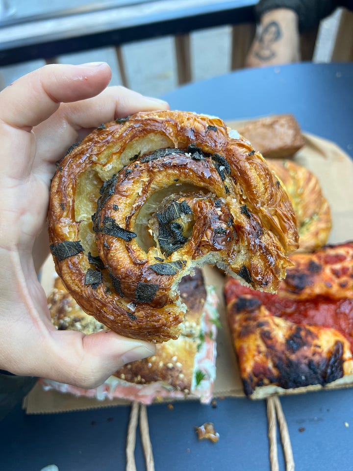 Last week I was in New York for a friend’s wedding. In true Pizza Tourist fashion, the trip turned into a blur of pizzerias, bakeries, and long walks across boroughs. Between a pajama-themed book launch, a few martinis, and a picnic in Prospect Park, I tried to squeeze in as many pizza stops as possible.