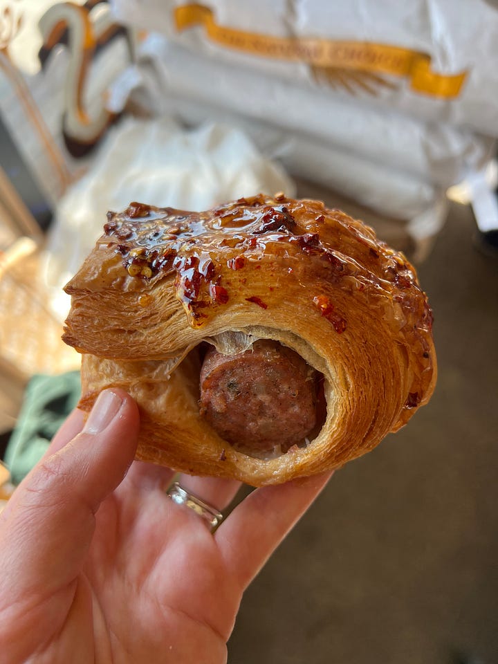The perfect cozy weekend bake or post-fiesta cure. I was bi-coastal this past week and tried two (well three if you include mine) sausage rolls. First at Radio Bakery in Brooklyn, and just yesterday, I tried the sausage roll to debut soon at Petit Grain Boulangerie in Santa Monica. I recommend both. My recipe is made up of leftover pizza dough :) So bring out the carbs, bring out the sausage! It’s carb-loading season.