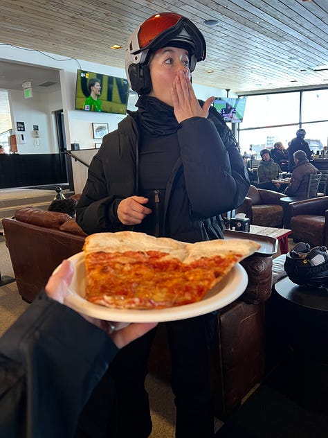 I’m happy to report that I can still thoroughly enjoy bad pizza. Let me be clear, this pizza slice was good, but not great. BUT. There is something deeply satisfying about a mediocre slice on a hungover ski day.