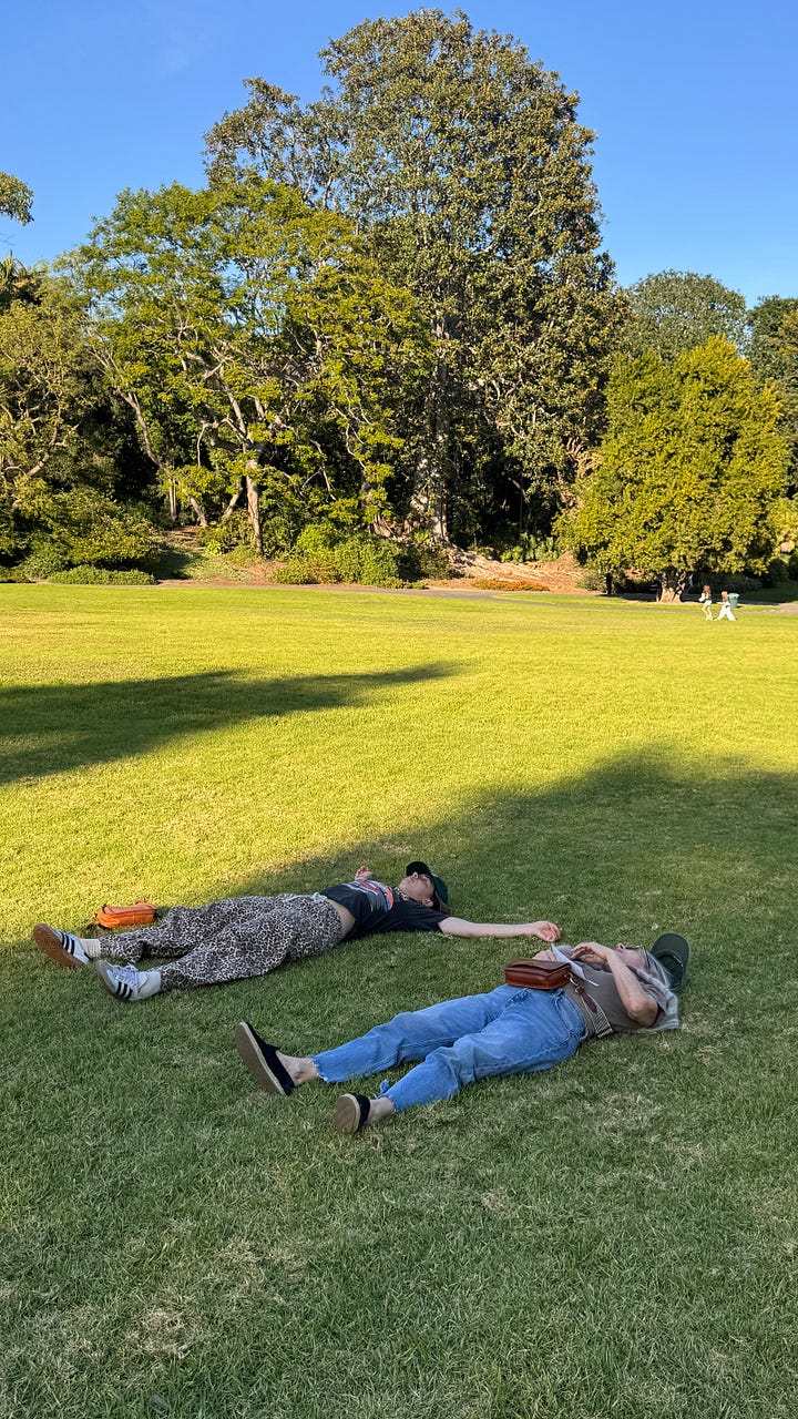 Dim sum in San Gabriel Valley. This spot blew our minds. We had lunch and then took a long walk in Botanical gardens. Here my mom and I are digesting on the grass.